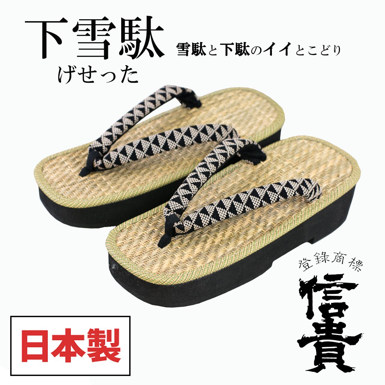 信貴(しぎ)ブランドオリジナル商品の「下雪駄(げせった)」です。下駄と雪駄を融合させたデザインで、雪駄には無い衝撃吸収性と安定性と、下駄には無い天表の質感や快適性の良いとこ取りな逸品です。